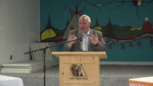 Archie Martin, from the Métis and Mi'Kmaq First Nation, gives a presentation on the importance of treaties in Canada